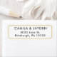 Lägg till en personlig beröring till din bröllopsinbjudan med den här enkla adressetiketten med guld gräns och enkelt teckensnitt. Välj mellan olika alternativ för teckensnitt och färg om du vill skapa en unik adressetikett för återlämning av personliger som perfekt återspeglar stil och personlighet. Den anpassade designen är perfekt för att skapar ett varaktigt första intryck.