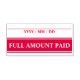 Denna enkla och enkla utformning av gummi frimärke innehåller meddelandena "FULLT AMOUNT BETALAT" och en rad där ett betalningsdatum kan skrivas. Det skulle kanske kunna användas för att ange att en faktura eller faktura har betalats.