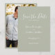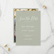 Inbjudningskortet i Bröllop spara datum har en elegant, modern och minimal typografisk utformning med ett system för grönt färg. Redo för dig att anpassa dig med informationen om din speciella dag och lägga till ditt eget foto på baksidan av kortet. Bläddra i Eleganten Sage Grönt Minimal Bröllop Suite för att hitta matchande mallobjekt.