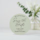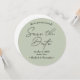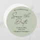 Meddela din speciella dag med vårt "Sage Grönt Minimal Bröllop spara datum Round Card". Det här kortet har en elegant och modern grönt i elegantens sage och har en sofistikerad ton för bröllop. Anpassa med namn, bröllop-datum, QR-kod, bröllop-webbplatser och information så att det blir unikt för dig. Perfekt för par som vill ha ett minimalistiskt och snyggt spara datum meddelande.