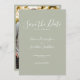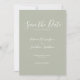 Inbjudningskortet i Bröllop spara datum har en elegant, modern och minimal typografisk utformning med ett system för grönt färg. Redo för dig att anpassa dig med informationen om din speciella dag och lägga till ditt eget foto på baksidan av kortet. Bläddra i Eleganten Sage Grönt Minimal Bröllop Suite för att hitta matchande mallobjekt.