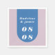 Vår minimala, djärva retro stil bröllop-napkin är perfekt för trendigets par som kärlek står ut och skapar ett djärvt påstående. Vår design har en djärv ljusblå och ljusblå lila färg-kombination. En enkel ritform skapar ett fetstilt utseende med bröllop-datum som visas fet i vitt stort teckensnitt tillsammans med parets namn. Designad av Moodthology Papery