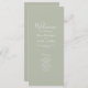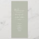Detta helt enkelt designade och fantastiska programkort för Bröllopsdag har en elegant, modern och minimal typografisk utformning med ett tema för grönt färg. Redo för dig att anpassa dig med information om din Bröllopsdag. Bläddra i Eleganten Sage Grönt Minimal Bröllop Suite för matchande mallobjekt.