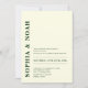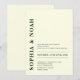Den här inbjudan innehåller en sofistikerad bakgrund av elfenben med minimal design. Parets namn framhävs med fet, elegant typografi i grönten emerald, vilket tillför inbjudan en del modern elegans.