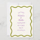 Den här utformningen har en enkel, vismisk, handdragen stil vågigt gräns. Det teckensnitt som används för huvudtexten är avslappnad och leksak, med en handskriven kvalitet, ge en personlig, intim beröring. Använda den här designen om du vill prioritera en vänlig och lättillgänglig vib till bröllop framför formalitet.