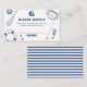 Det är en pojkbabydusch, Nautisk babyduschtema, Fisher-babyduschtema, fira den kommande babyduschen med vår marinblå, moderna sjöfärgssegelbåt, ankare, hjul, båt, ring, livräddningsgummi, krabba i Beige färg, baksida med marinblått rand mönster. Du kan anpassa din egen text och färg genom att "anpassa den här designen".