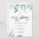 Enkel elegant botaniskt bröllop alla i en inbjudan. Modern minimalistisk bröllopsinbjudan med handmålad vattenfärg eukalyptus grey med detaljer och QR-OSA på baksidan. Du kan anpassa texten, teckensnittet stil, färg och storlekt framför och bakom inbjudan. Vänligen kom gärna i kontakt med mig för matchande artiklar.