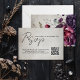 Förbättra din bröllop OSA med vår anpassade elegant med ogynnsam global QR-OSA kort. Det här kortet har en problematisk bakgrund och modern typografi med fetstilt lila och röd blommigt på baksidan, vilket gör att dina gäster kan svara på ditt evenemang utan problem samtidigt som du kan se mer information på bröllop webbplats. Se till att du ser designsamlingen för alla dina stationära behov i bröllop.