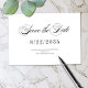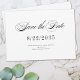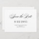 Det här enkla svarta och vita bröllop spara datum-kortet med elegant har en minimalistisk layout som kombinerar roligt, vismisk, klassvis skripttypografi och klassisk serif typsnitt i svart på en ren vit bakgrund för en modern men tidlös design med vintage flair. Texten Spara datumtiteln skrivs i ett romantiskt handskriftsformat kalligrafiskt teckensnitt med nyans, med ett anpassade och detaljer nedan i populärserif-typografi. Baksidan av det datum då platta kortet sparades är ett minimalt helt vitt papper. Du kan redigera texten i produktmallen för att anpassa det här objektet till ditt eget bröllop.