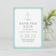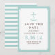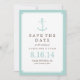 Snyggt spara datum meddelande perfekt för ett sommarbröllop eller ett tropiskt destinationsbröllop illustrerar på ett vackert sätt ett ankare och ett elegant nautiskt rand mönster på baksidan. Besök vår butik om du vill ha fler alternativ för färg och matchande produkter.