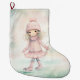 Mint and Rosa Winter Scene Girl Skating Stor Julstrumpa