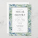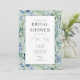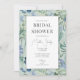 Elegant inbjudningskort för möhippan har myntbakgrund med blå vattenområden, gula blommor och grönt.