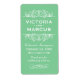 Perfekt för vinodlingar bröllop eller flaska i vin, dessa elegant-vintage har en stil-märkning som har ett personligt bröllp-monogram med brid och brudgumms namn, bröllop datum, typ av vin och tack för ett budskap som kan vara helt personlig. Mint grönt färg med vit text.