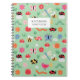 Den här söta mintfärgade anteckningsboken har ett lekfullt mönster med skalbaggar, bin, fjärilar och blommor. Personalisera den med ditt namn för en charmig vardaglig present.