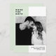 Mint Färg Block med Modern Typography Photo Spara datum meddelande. Anpassadet sparar datumet med modern typografi med mynta och vita färg-blockbakgrund. Denna moderna besparing är perfekt för alla bröllop-teman. Andra färg finns tillgängliga.