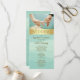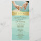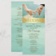 Enkelt, elegant, modernt bröllopsprogram med guldtryck och mintgrön färg med eget foto.