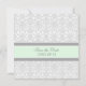 Tillkännagivandekort för bröllop spara datum med elegant ljus pastellmynta, grönt för grått och vit blommigt, dammbad. Anpassade med dina bröllop-uppgifter, som finns i ett stort antal matchande bröllop-produkter. Kontakta oss för att begära en ändring av färg eller en anpassningsbar.