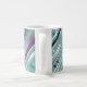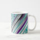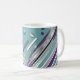 Purple Polka dot with purple and silver diagonal striped retro-modern coffee mug on a Mint Green background.