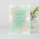 This design showcases a soft mint green watercolor wash that creates a peaceful backdrop. Delicate peach and blush pink roses are artfully arranged with wispy leaf stems for a romantic aesthetic. The botanical elements offer a fresh, seasonal feel that is both sophisticated and light. This palette is perfect for those seeking a graceful and airy atmosphere.