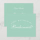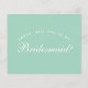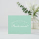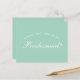 En enkel, minimalistisk brud frieri som också kommunicerar bröllop färg för brudklänningar: mynta. Det är bara vit text på gröntens bakgrund. Ord-symbolen längst fram och meddelandet på baksidan är skrivet i ett kalligrafiskt skript för elegant, den bågade texten "[Namn] kommer att vara min" ovanför ord-symbolen med små bokstäver.
