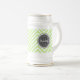 Monogrammed grönt chevron zigzag mönster med eget namn. Den trendigen geometriska designen för , som har en grått-cirkelnamnplåt som enkelt kan anpassas till det första namn och det sista namnet från det ursprungliga brev.