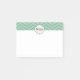 Mint Grönt Grått Chevron Patterned Monogrammed Post-it Block