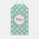 Mint Grönt Grått Quatrefoil Namn Monogrammed Laure Presentetikett