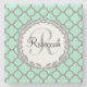 Mint Grönt Grått Quatrefoil Namn Monogrammed Laure Stenunderlägg