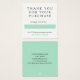 Tack för att du köpte in paket i en söt minimalistisk design med ett mint grönt hjärta där den som förberedde paket kan skriva på sin namn för hand för att få en personlig beröring. Lägg till kontaktinformation på pastellgrönten på andra sidan av tackkortet för beställningskortet. Du kan också skriva av en rabattkod för dina kunders nästa köp.