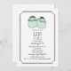 En inbjudan till babydusch med en illustration av ett par mint grönt baby moccasins. Dekorativt svart gräns och text. Anpassa texten.