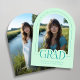 Vi presenterar vårt meddelande om studenten på Minnet grönt Arch-foto - en elegant, modern keepsaké designad med minimalistisk elegans. Framsidan har ett ljusformat foto med ett tunt gräns och ord "grad" som delvis täcker fotot. Texten är i turkos. Anpassa mallen genom att lägga till studenten, namn och skola för att skapa ditt meddelande med lätthet. På baksidan överför du ett foto i fullt storlek och tar med en namnteckning linje. © Kimbelled, LLC