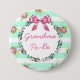 "Grandma to be" Baby Shower Button Mint Grönt and Rosa Blommigt Ro Mönster