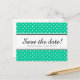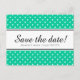Spara bara datumvykorten med min grönt och vit polka dots mönster. Modern polkadot-utskrift i chic för elegant bröllop party. Trendig och roligt contemporary stil. färg-skuggning och personlig för anpassningsbarnas bakgrund på baksidan. Ändra kvantiteten för att få den billigaste prisa per kort.