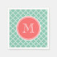 Mint Grönt Quatrefoil Mönster, Coral Monogram Pappersservett