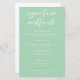 Den här mjuka mint-grönten bröllop namnteckning cocktailmeny har en chic vit typografi för en fin utomhusceremoni i vår. Ett enkelt skript och ett elegant på tysta gröntar för fast pastellform för en trädgårdsmottagning.