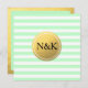 Mint grönt & White Stripe-guldfärgad inbjudan