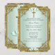 Mint Grönt Blue, Guld Baptism-inbjudan. Skador av pärlkärl i elegant ram och guld kor. Anpassa med din egen information. Lägg märke till bilder! De har inga riktiga juveler!