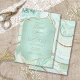Du får både glamor och stor inverkan med den här samordnande bröllop-uppsättningen som har abstrakt mot mönster, textur med faux-kristaller och högdagrar i glittrande faux guld-folie. När du tittar på färg-kombinationer, som den här svit med dess mjuka pastellpalett från mint grönt till tårblått, skapar du bakgrunden för biet i den samordnade samlingen. I elegant Inbjudningskort för möhippan finns allt detta med en sexkantig, halvgenomskinlig etikett i grönt för att hålla texten. En mall finns för att enkelt lägga till din händelseinformation. Visa samlingslänken på den här sidan om du vill se alla matchande objekt i den här vackra designen eller sök-ID827 om du vill se ytterligare alternativ för färg för den här designen.
