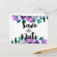 Mint & Lila Blommigt Vatercolor Bröllop spara datum vykort Med trendigets penselskriptteckensnitt! ~ Kolla min butik för att se hela bröllop-svit för den här designen!