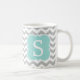 Mint Monogrammed Grått Chevron Rand Kaffemugg