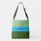 Lägg till lite elegans och stollig till dina tillbehör med den här unika korsningspåsen. På framsidan möter en charmerande mörk grönt och sage grönt stor rand-bakgrund en azure blue turquouise rand med gult små för din familj namn eller monogram. Vänd den om du vill hitta samma lyxaktiga mörk grönt och skeva grönt rand med många lilla gult rand. Det är två stilar i ett, en fin blandning av sofistikering och konst, allt i en enda korsningspåse. Hobinishop