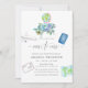 Mint och blue boho blommigt möhippa färdas tema möhippa inbjudningskort med fågelfjädrar designade för att snabbt och enkelt kunna anpassas.