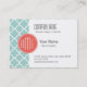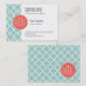 Mint och Coral Quatrefoil med Anpassningsbar Monog Visitkort