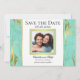 Ett bildkort för "Spara datum" i contemporary med en mynta och faux guld-folie med mönster som bakgrund för att tillkännage era bröllop-planer i stil. Ladda upp det valda fotot i ställe på det exempelfoto som visas i designmallen. Redigera exempeltexten med dina specifikationer.