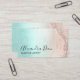 Elegant- och snyggt-konstnärer affärskort med faux kopparmarmor från ro, struktur, mint grönt blått struktur och elegant guld kalligrafteckensnitt.