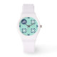 Mint och Mörk blått Interwoven Flower Mönster Armbandsur
