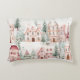 Mint och Rosa Mysigt Watercolor Winter Scene Prydnadskudde