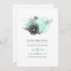 Rustik vintage vattenfärg blommig bröllopsinbjudan med inslag av mint och svart kol.