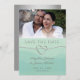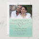 Enkelt, elegant, silver grått brev i kombination med elegant, vattenfärgsmint grönt bakgrund och silver-rep. Modern, minimalistisk spara datumet för bröllopsinbjudan, med anpassningsbar foto och snyggt silver folie baksida. Perfekten matchar temat "Tie the Knot" bröllop!