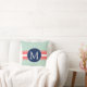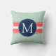 Mint Polka Dot Mönster Coral Navy Blue Monogram Kudde